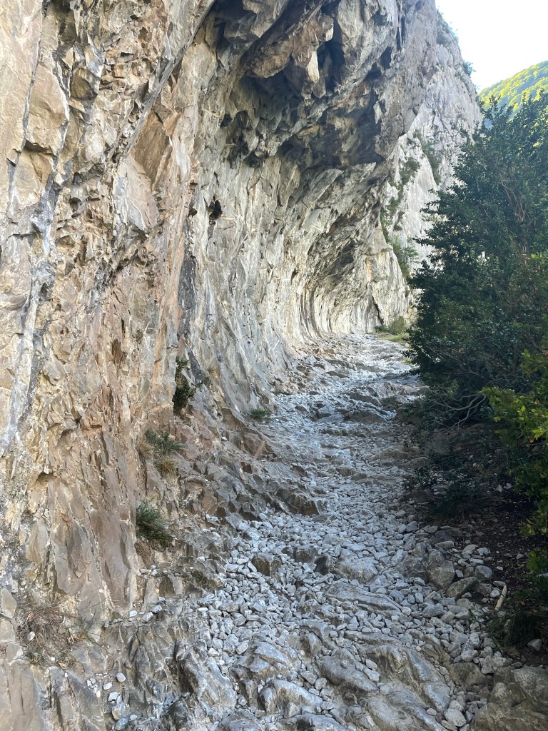 Après, c’est une longue montée sur 6 heures… d’abord dans la falaise taillée, puis dans une gentille forêt