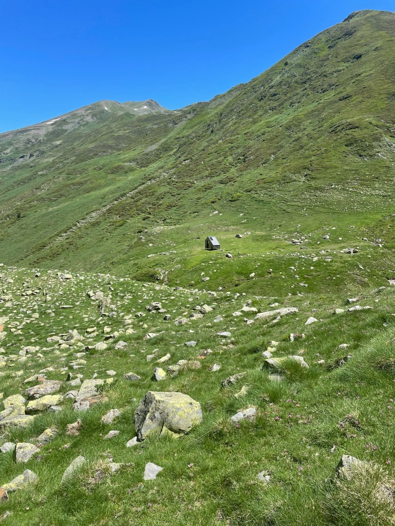 Le chemin continue longtemps dans les pâturages, après avoir dépassé les premières cabanes de bergers où l’on s’active pour tout remettre d’aplomb.