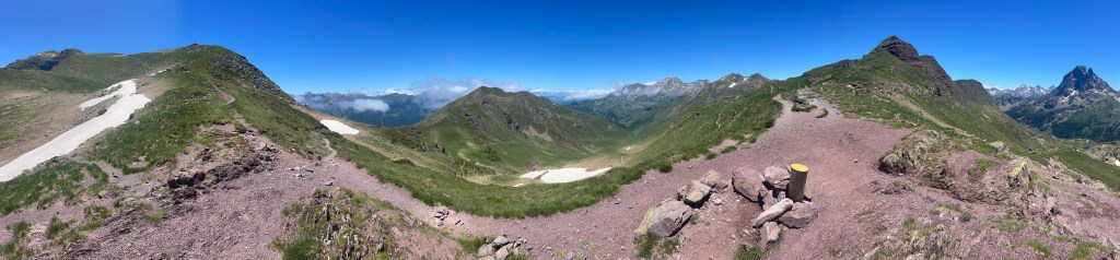 Et c’est la descente, d’abord vers deux superbes lacs. Beaucoup de randonneurs à la journée de ce côté. Moi, je viens de franchir un col 🤪