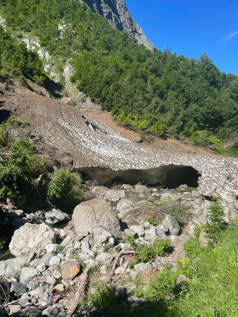 Je monte un sentier en lacets, mais au moins je me rapproche du col. Et je vois pourquoi tant d’eau dégouline des montagnes.