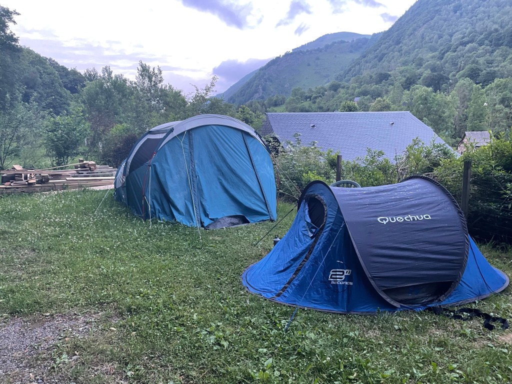 Comme j’ai été la première à réserver j’ai la grande tente 2 places avec auvent pour randonneur en peine de gîte. Mes deux compagnes, en implorant, ont réussi à avoir aussi une tente.