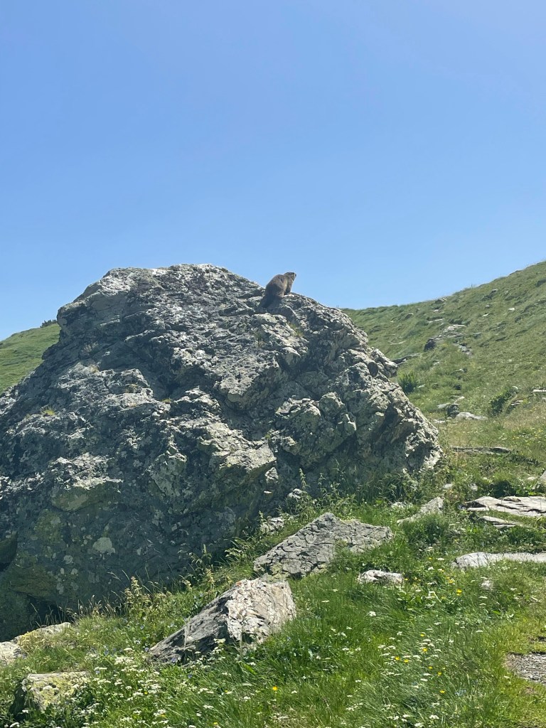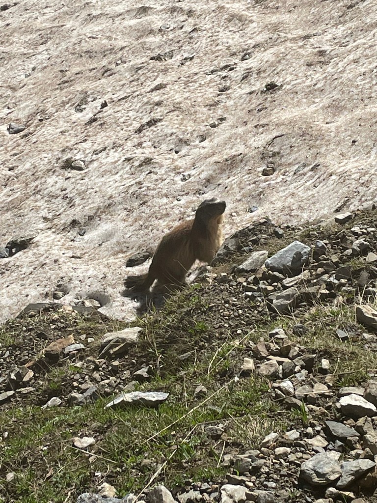 J’entends beaucoup de marmottes et je finis non seulement par en apercevoir quelques unes mais aussi à les photographier après demande polie de permission.