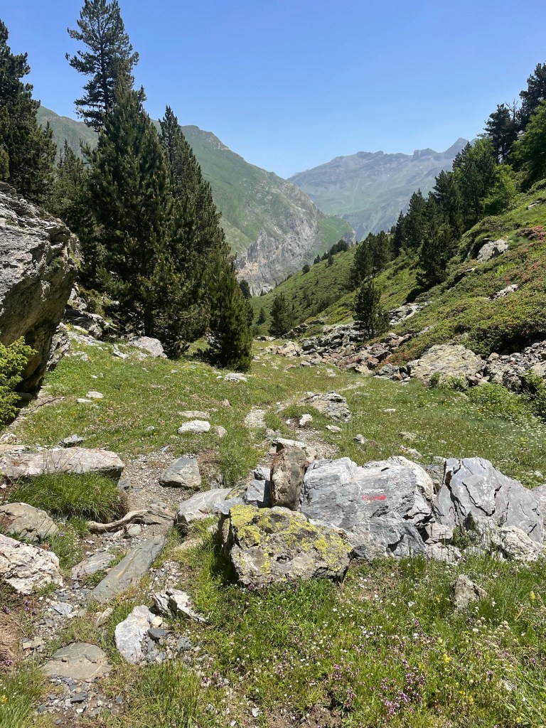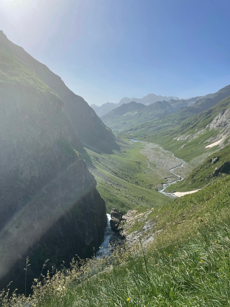 Je peine un peu dans la descente et je rêve d’une glace encore une fois, il y a un refuge juste avant Gavarnie et j’ai hâte d’arriver pour boire et en manger une.