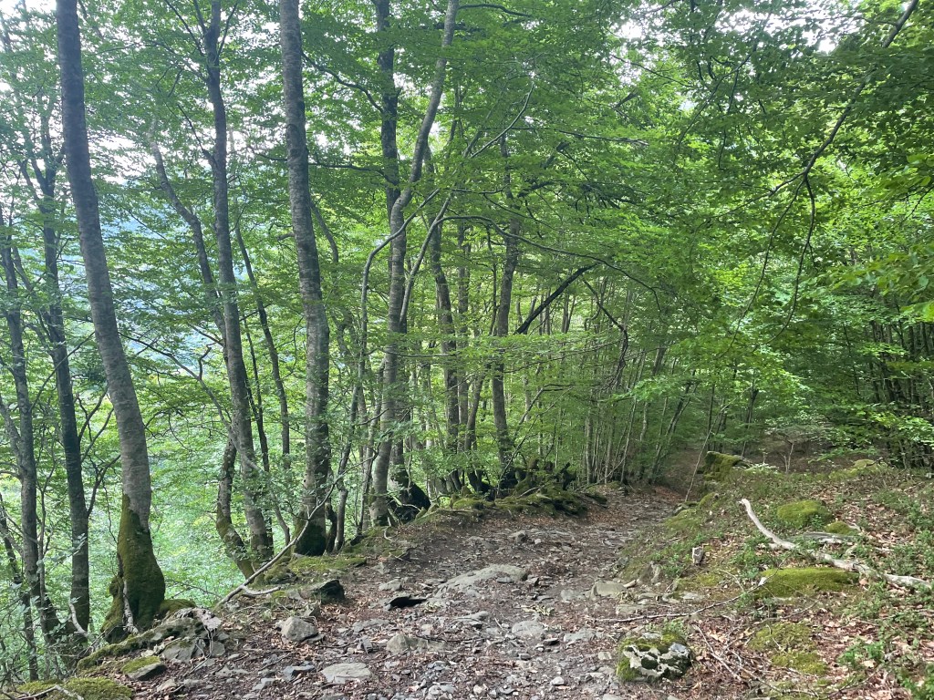 La descente passe par une agréable forêt de hêtres.