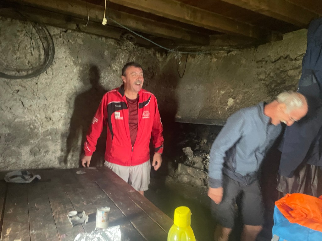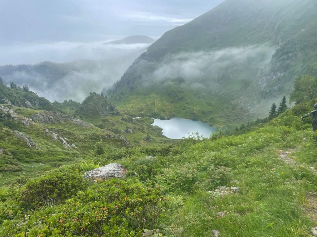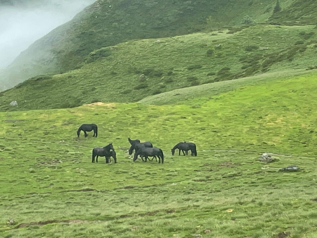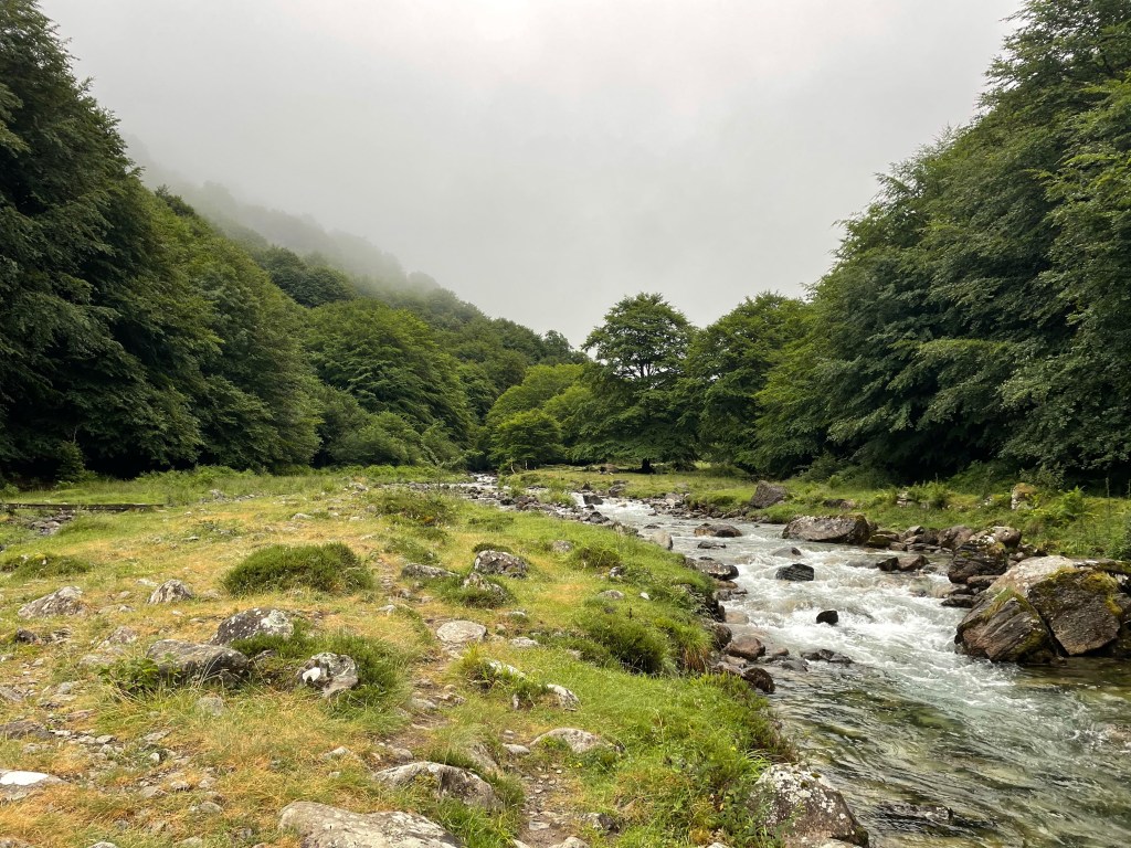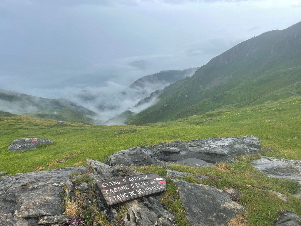 Je retrouve dans la montée trois amis qui ont commencé leur 3ème tronçon du GR10 il y a 4 jours. Au moins, la marche sous la pluie est moins déprimante à plusieurs.