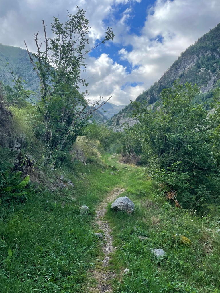 Après la détente, il faut commencer sérieusement la montée. Nous devons monter au refuge des Bésines situé à plus de 2100m. Mérens est à 1050m environ.