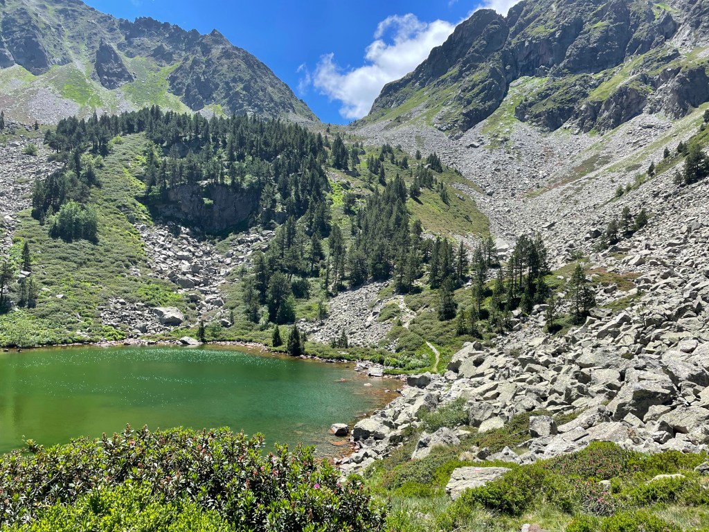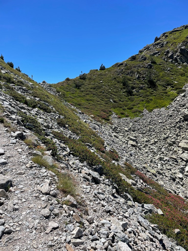 En fait elle est malade, sans doute d’un tartare pas frais pris hier, jour de repos à Ax-les-Therme… mais il faut monter au refuge. Programme: beaucoup de pauses et une allure d’escargot pour arriver au col. j’en profite pour admirer le paysage et faire des photos. Bonus: pas de sueur et les vêtements restent presque propres 😁