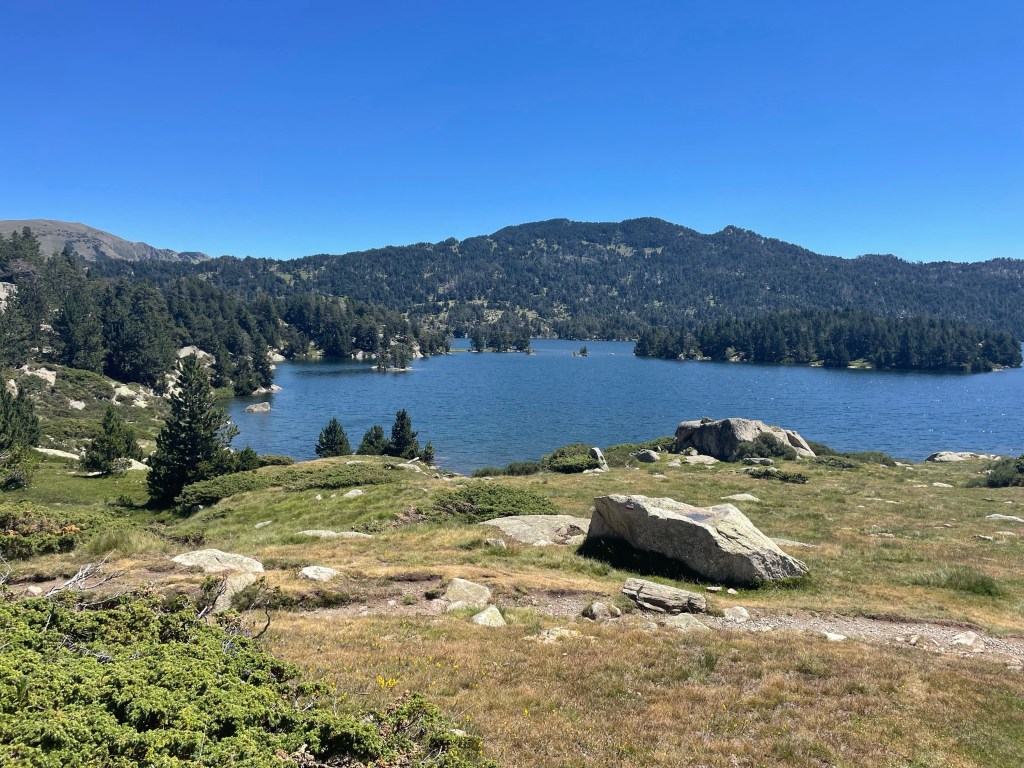 J’arrive enfin au lac des Bouillouses, splendide entouré de pins.