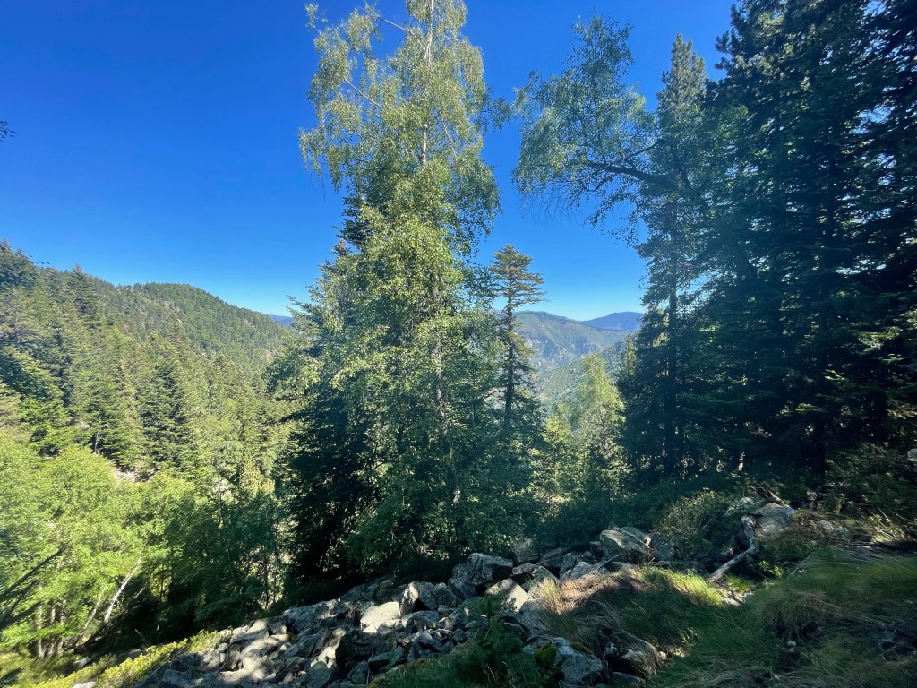 Vient ensuite une longue traversée dans la forêt à flanc de montagne.