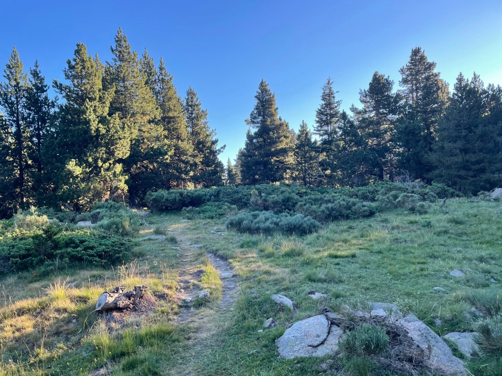 Je quitte le refuge très tôt, à 7h15. En fait, même s’il est petit (20 personnes en dortoir), ses environs sont envahis par les tentes. Il doit y avoir plus de soixante personnes qui ont dormi aux alentours dont beaucoup d’Espagnols.